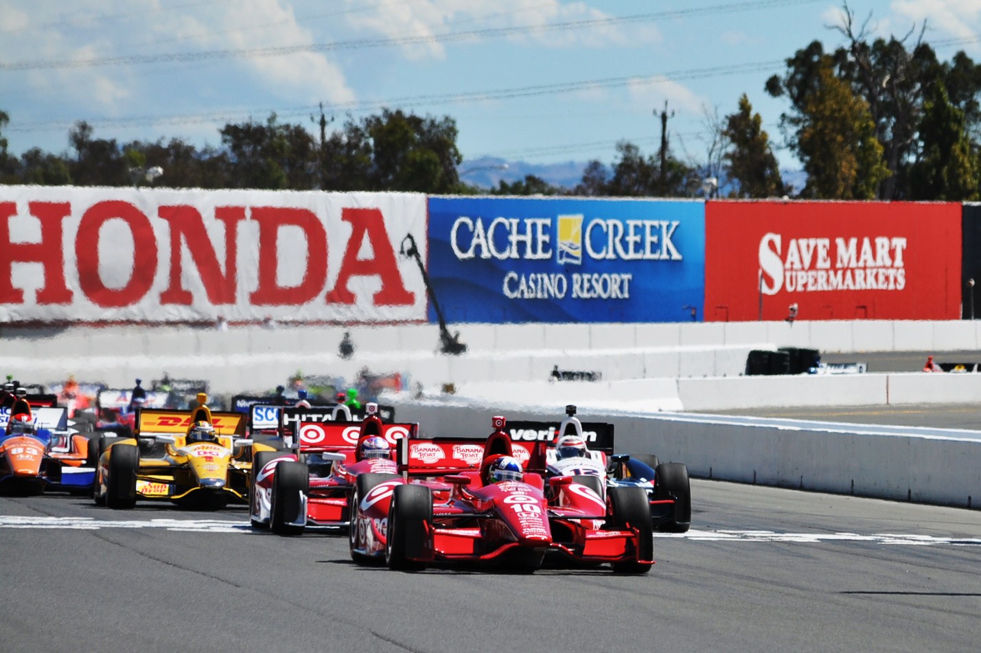 Illustration: Ryan Briscoe approaching Turn 2 at Sonoma, with the Turn 3 just beyond. Below, Hunter-Reay exits 3a.