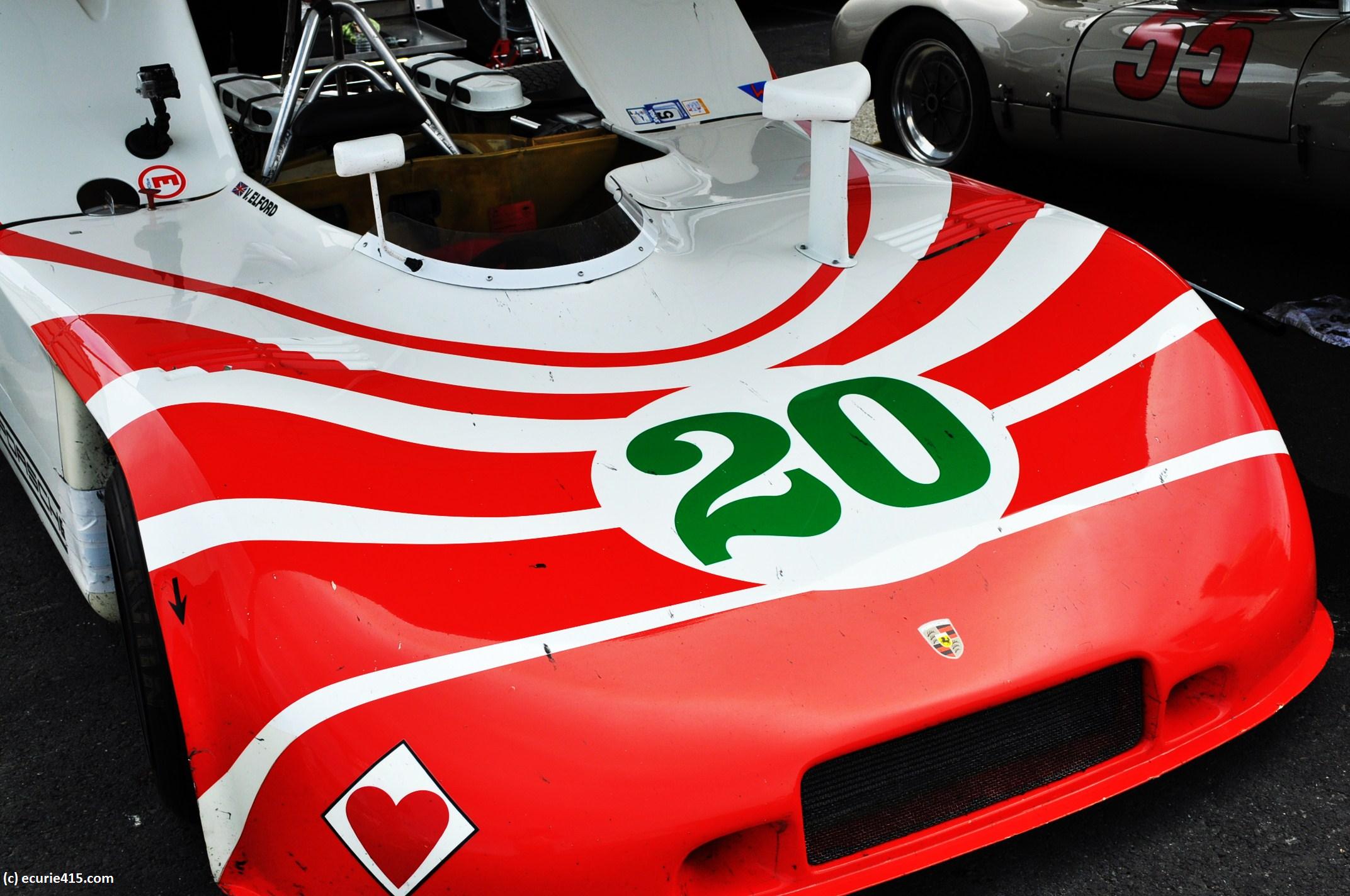 The 917 was recently featured in our post “Sonoma Standout“. In 1970, the Shell-liveried 917 gave Porsche its first outright win. The red 917 below was brought by Porsche to the Monterey Historics in 2009.